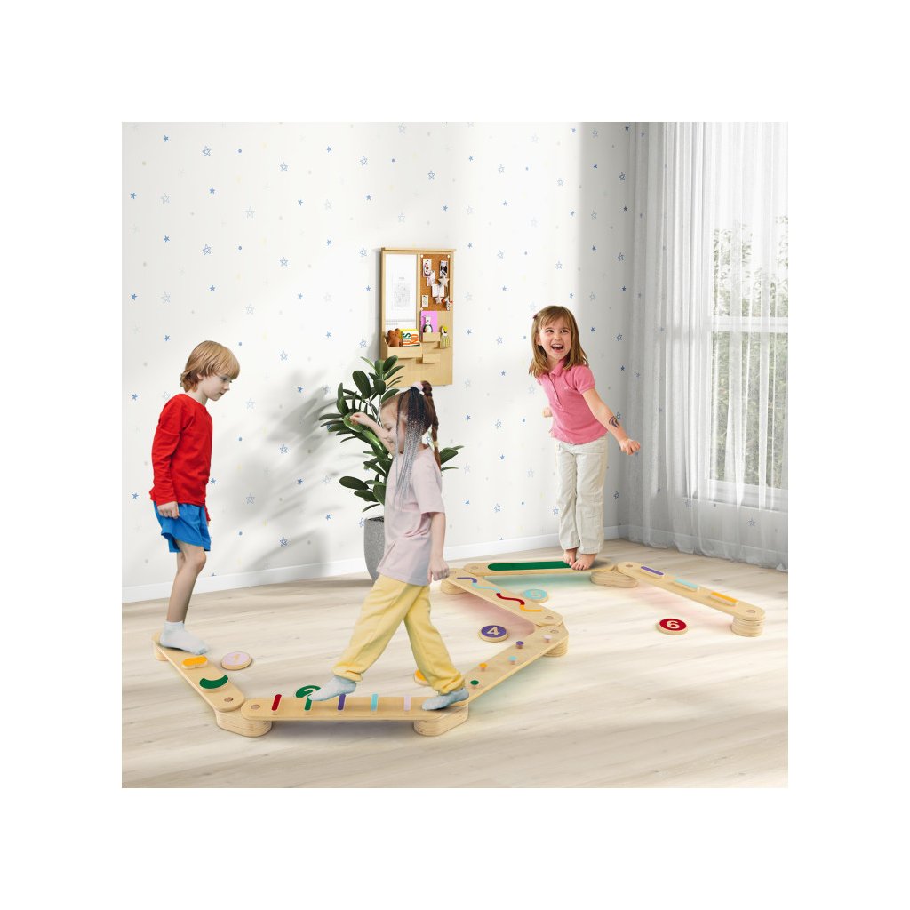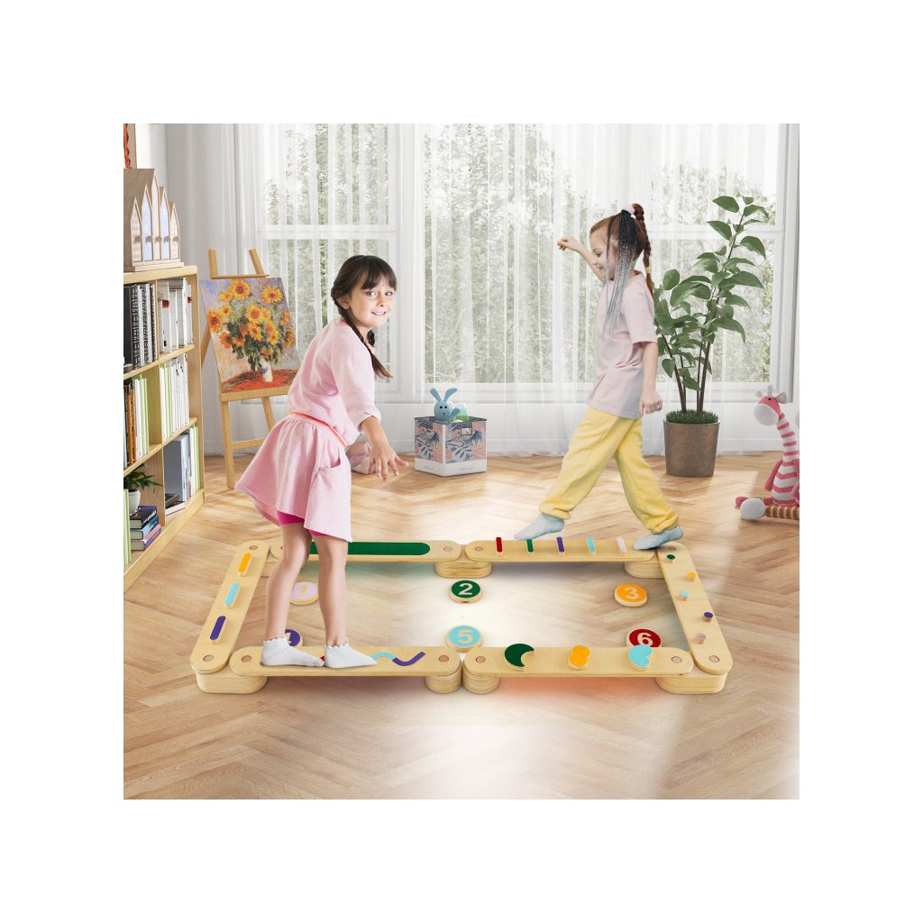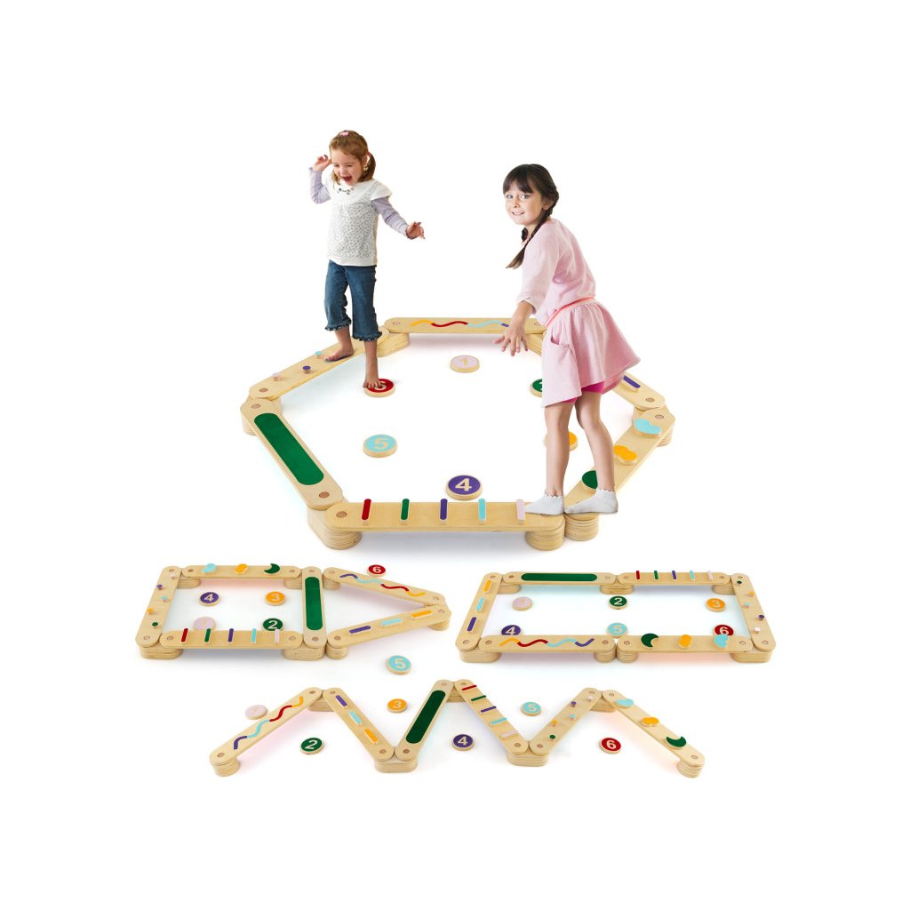 Balančná dráha obsahuje 6 kladín a 6 nášľapných kameňov. Jednoduchý systém vkladania jednotlivých častí dohromady, umožňuje stavať balančné dráhy ľubovoľným spôsobom a vytvárať tak rôzne zložité úrovne. Trénuje rovnováhu a koordináciu a zároveň hravou formou podporuje dôveru vo vlastné schopnosti. Môže zvýšiť sebavedomie, stimulovať kreativitu a predstavivosť, trénovať motorické zručnosti a svalovú silu a poskytovať zábavný a interaktívny spôsob rozvoja detí. Vhodné aj na terapeutické účely. Jednoduchý tvar a dizajn, moderné farby, vyrobené z prírodného dreva Špecifikácia: Farba: Viacfarebná Materiál: brezová preglejka Rozmery každého kladiny: 58 x 9,5 x 3 cm (D x Š x V) Rozmery každého nášľapného kameňa: 9,5 x 9,5 x 1,5 cm (D x Š x V) Rozmery okrúhle základne: 9,5 x 9,5 x 6 cm (D x Š x V) Rozmery dlhej základne: 17,5 x 9,5 x 6 cm (D x Š x V) Vhodný vek: Asi 1 rok Nosnosť: 60 kg Čistá hmotnosť: 6 kg Rozsah dodávky: 6 x kladina 6 x nášľapné kamene 5 x dlhá základňa 2 x guľatá základňa 1 x manuál Nosnosť: do 60 kgDodatočné parametre