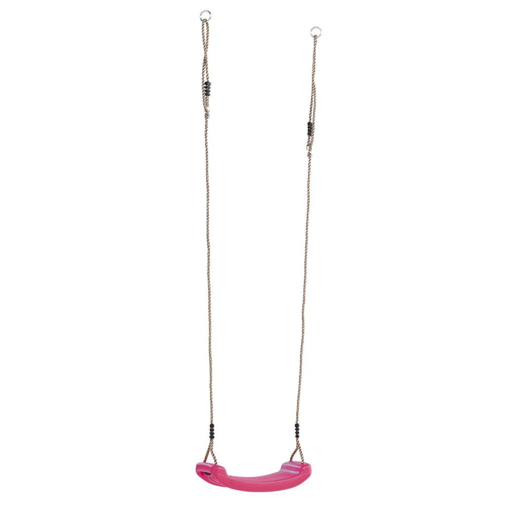 Kvalitná, klasická závesná hojdačka z odolného, stálofarebného plastu, s nastaviteľnou výškou lán. Celková dĺžka lán = 1,8 metru.Dodávka obsahuje: plastový sedák, laná v dĺžke 1,8m, lanové zámky, kovové krúžky z pozinkovanej ocele k zaveseniu, návod.
