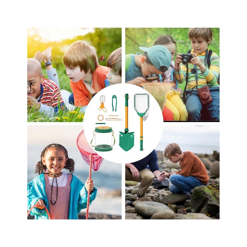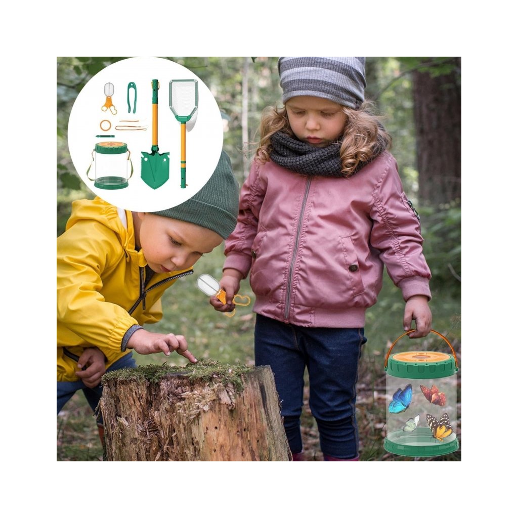 Detská prieskumnícka sada na Motýle je perfektná sada pre malých dobrodruhov, ktorí chcú objavovať svet okolo seba. S farebnou sieťkou na motýle a ryby, praktickým pojemníkom s lupou a ďalším vybavením sa každá prechádzka stáva malou expedíciou plnou objavov. Deti si môžu chytať hmyz, sledovať jeho správanie a spoznávať zákonitosti prírody zblízka. Sada obsahuje aj lopatku, pinzetu a ďalšie nástroje, ktoré podporujú jemnú motoriku, koordináciu oko-ruka a prirodzenú zvedavosť. Vďaka bezpečným a ľahkým materiálom je hra nielen zábavná, ale aj bezpečná, a deti si tak môžu užívať každú chvíľu vonku. Tento set premieňa každú prechádzku alebo pobyt na záhrade v dobrodružstve, učí deti pozorovať, skúmať a chápať prírodu hravou formou a rozvíja ich záujem o svet okolo nich. Je ideálny pre malých objaviteľov, ktorí majú chuť skúmať a učiť sa novým veciam každý deň. Súprava obsahuje: - Veľká nádoba na hmyz s pohodlnou rukoväťou, vetracími otvormi a lupou - Sieť na hmyz/ryby so skladacou rukoväťou - Lopata so skladacou rukoväťou - Pinzeta - Nožnice - Pás na zavesenie kontajnera - Krátky prívesok - Dlhý prívesok -Lupa -Okuliare Parametre: Rozmer: 19,5 x 23 cm Materiál: plast Vek: od 3 rokovDodatočné parametre