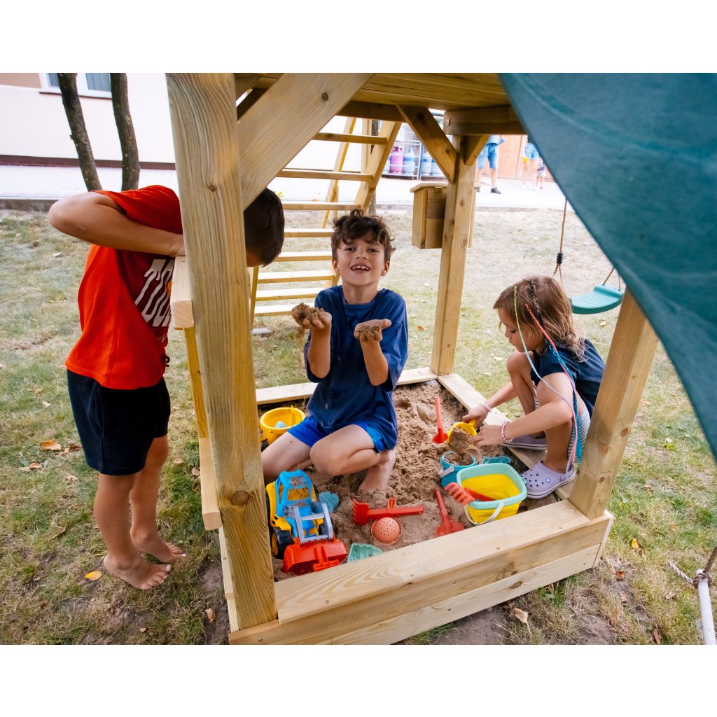 Little Paradise je drevené detské ihrisko, ktoré sa rýchlo stane najobľúbenejším miestom na záhrade. Ponúka deťom priestor na pohyb, fantáziu i spoločnú hru a každý deň prináša nové zážitky plné radosti.