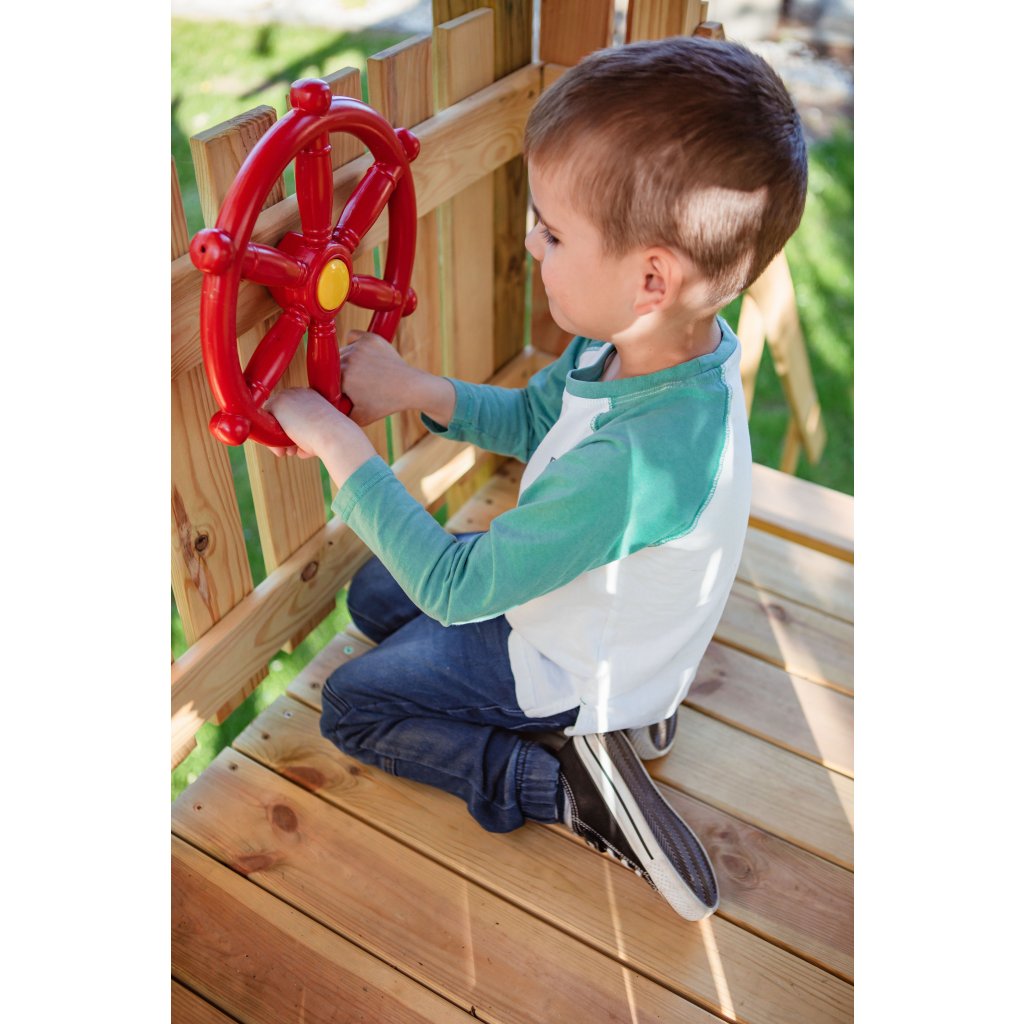 V spodnej časti veže deti objavia pieskovisko pre zmyslovú hru aj hrací modul piškvorky, kde sa môžu precvičovať pamäť a hrať sa s kamarátmi. Herná veža je ďalej doplnená o teleskop na pozorovanie okolia, kormidlo pre malých kapitánov a listovú schránku, do ktorej môžu ukladať tajné odkazy. Tieto herné prvky podporujú detskú fantáziu a premieňajú každý deň na nové dobrodružstvo.