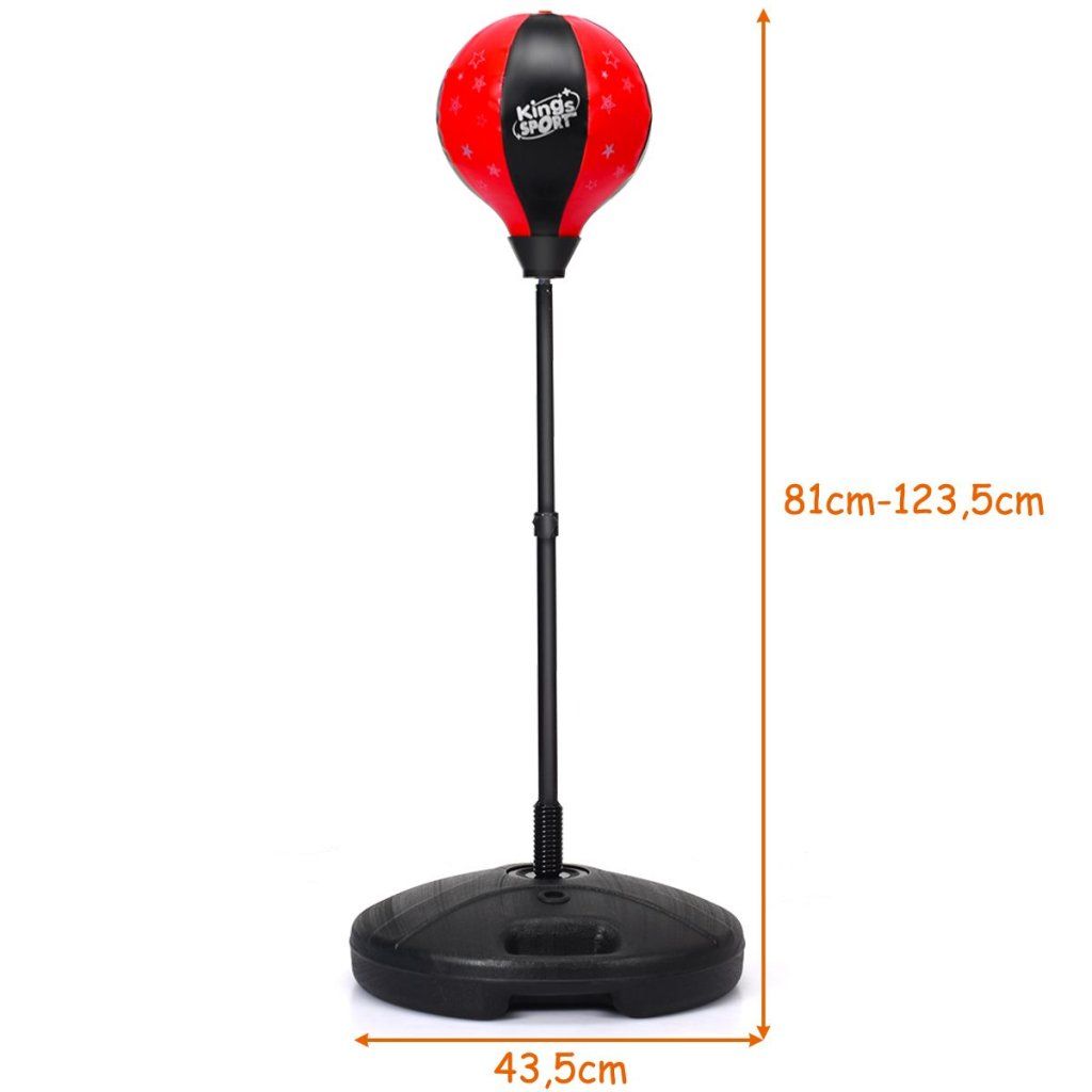 Výškovo nastaviteľný boxovací set pomáha deťom pochopiť výnam sebakontroly, disciplíny a zdravej súťaže. Prebuďte v sebe malého bojovníka! Boxovacie vrece na stojane je ideálnym nástrojom na zlepšenie fyzickej kondície a postrehu Vašich detí. Obash balenie: Boxovacie vrece Boxovacie rukavice Pumpička Parametre: Nastaviteľná výška: 81 cm - 124 cm Priemer stojana: 42 cm Materiál: PE + PVC koža + železo Vodná kapacita stojana: 30 kg Piesková kapacita stojana: 15 kgDodatočné parametre