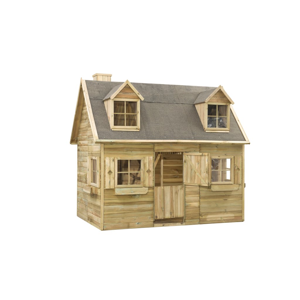 !!! K TOMUTO DOMČKU JE ÚČTOVANÉ ŠPECIÁLNE DOPRAVNÉ VO VÝŠKE 2.000,- Kč !!! Detský domček Milan ocenia všetci milovníci moderného designu. Domček s pôdorysným rozmerom 248 x 161 cm poskytne bezpečný priestor pre veľa zábavy a hier. Domček je vyrobený z kvalitného, ??smrekového dreva, v prevedení čisté drevo. Sila stien je 12 mm. Domček má veľké okná vyplnené plexisklom. Vstup do domčeka zaisťujú dvojdielne dvere. Pod oknami nájdete kvetináče na kvety. Domček poskytuje druhé poschodie o rozmere 100 x 150 x 110 cm, ktoré môže slúžiť na spanie. Strechu o rozmere 265 x 180 cm, odporúčame pokryť strešnou krytinou. Strešná krytina nie je súčasťou dodávky. Dodávka obsahuje: Drevo nakrátené na potredné dĺžky Kompletný montážny materiál Návod Parametre: Základňa: 250 x 160 cm (D x Š) Rozmery strechy: 265 x 180 cm (d x š) Výška: 235 cm Vnútorné rozmery: 240 x 150 cm (d x š) Podkrovie: 100 x 150 x 110 cm (d x š x v) Výška podkrovia platformy: 110 cm Schody: 55x130cm Ihrisko tiež môžete zatraktívniť radom doplnkov ako je napríklad kormidlo, volant, ďalekohľad, periskop, vlajka, listová schránka a ďalšie. POKYNY PRE MONTÁŽ Ihriská zo smreka sú určené pre celoročné vonkajšie používanie výhradne v privátnom sektore. Drevený materiál v prevedení čisté drevo odporúčame ošetriť impregnačnou lazúrou Drevený materiál, ktorý je ošetrený hĺbkovou tlakovou impregnáciou, nie je nutné po inštalácii natierať farbou či lazúrou, pokiaľ si tak neželáte urobiť z estetických dôvodov V prípade, že je impregnácia ešte nevyzretá odporúčame previesť náter až po jej vyzretí, teda vtedy, keď dôjde k zatiahnutiu impregnačného roztoku do dreva a zmiznú zelenkavé škvrnky. Tento proces trvá zhruba 6 mesiacov s ohľadom na počasie. V prípade vyzretej impregnácie je možné previesť náter ihneď. Odporúčame zdravotne nezávadné farby napríklad OSMO, Impranal. Zostavu je možné umiestniť na trávu, piesok, kačírok či mulčovaciu kôru, nikdy ihrisko neinštalujte na tvrdé podložie, ako je asfalt či betón.Dodatočné parametre