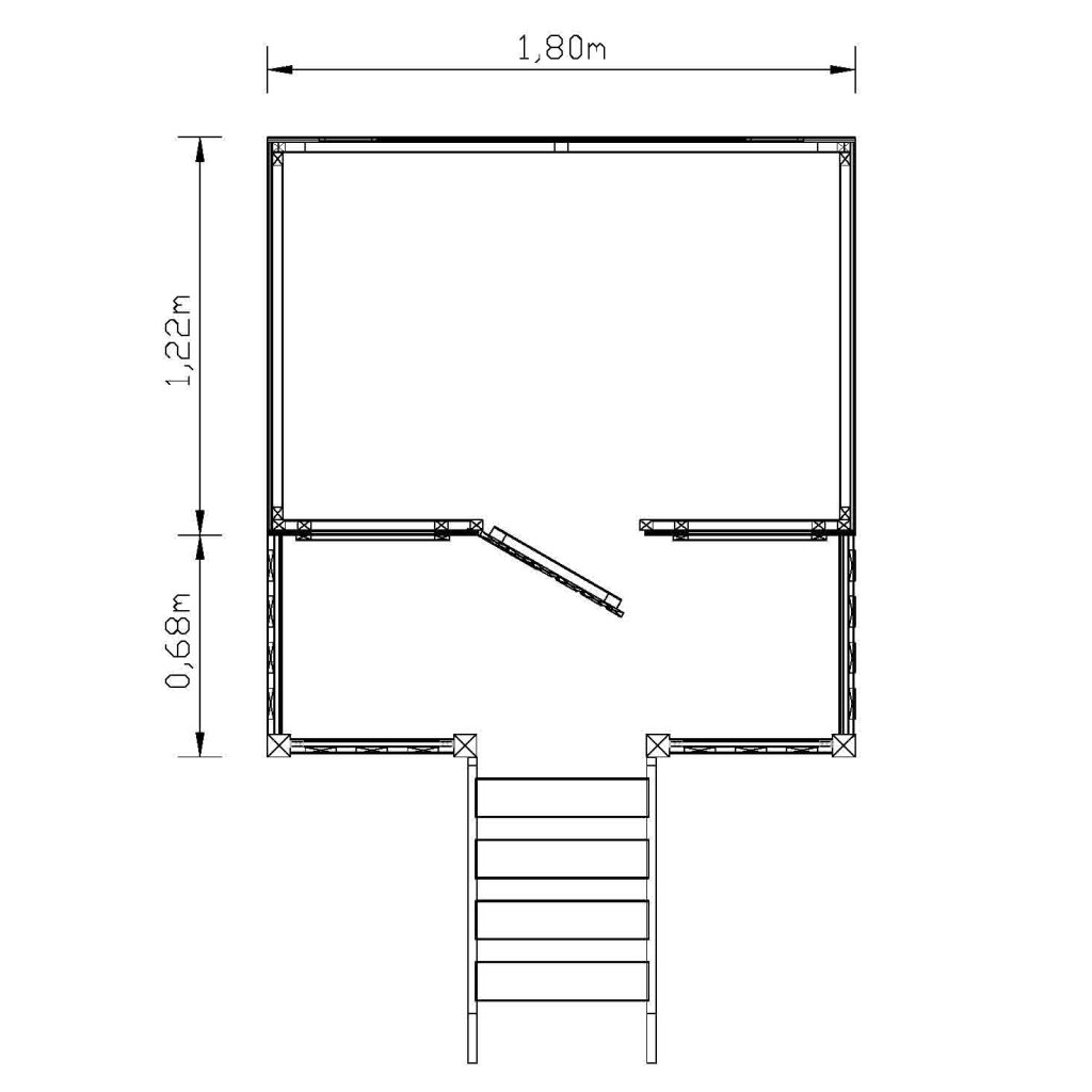 Domček má 2 okná o rozmere 56 x 56 cm, doplnená praktickými okenicami, vyplnená bezpečným plexisklom.
