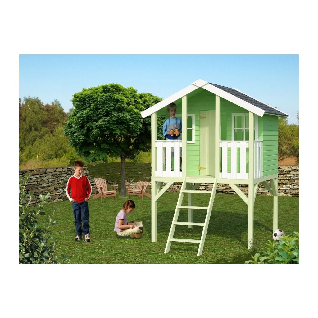 Detský domček Toby s priestrannou terasou je ideálnym miestom pre detské hry a nekonečnú fantáziu.