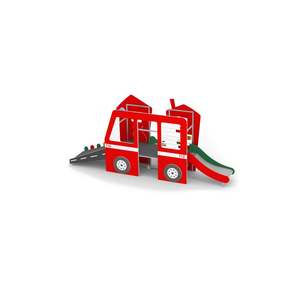 Sestava dětského hřiště se skluzavkami se skládá z těchto částí: 1× konstrukce domečku v designu hasičského auta 1× šikmá plošina 2 x počítadlo bariéry z HDPE desek s veselým designem interaktivní hra bludiště 2× skluzavka z nerezu s HDPE bočnicemi Dětské hřiště se skluzavkami je vyrobené z odolné nerezové konstrukce, barevných HDPE desek a nerezového spojovacího materiálu. Dětský domeček se skluzavkami Hasiči - 12068 je velmi pěkně vypracovaný, dětem nabídne mnoho možností ke hře - 2 x skluzavku, pohodlnou šikmou nástupní (klouzací) plošinu. Dále je zde 2x počítadlo a zábavný panel bludiště. Sestava je vhodná pro dětská hřiště, pro děti všech věkových kategorií. Tuto herní sestavu ocení děti v mateřských školách, na dětských hřištích, ale i u restaurací nebo hotelů. Dětské hřiště je díky snadnému přístupu vhodné i pro menší děti od 2 let. Herní prvky z nerezové oceli, mají životnost 50let a jsou bezúdržbové !!! Herní prvky české značky SAPrimo jsou jedinečné svým materiálem, designem a především výrobce klade velký důraz na kvalitu výrobku. Konstrukce herního prvku je vyrobena z odolné nerezové oceli, která není nijak barevně povrchově upravena a nemůže tak docházet k tomu, že by se časem olupoval lak. Z nerezové oceli je rovněž veškerý spojovací materiál a závitové tyče lan a sítí. Upozornění - nerezovou skluzavku nikdy neumísťujte na přímé slunce, v letních měsících mohou na skluzavce vznikat vysoké teploty a hrající se děti by se mohli popálit! Skluzavku nejlépe natočte směrem na sever nebo sestavu umístěte do trvalého stínu. Výška pádu dětského domečku se skluzavkami Hasiči - 12068 je 0,6 m, jako dopadové plochy dostačuje udržovaný trávník. Pokud na pozemku, kde chcete domek umístit není tráník doporučujeme zde položit pryžové desky, nebo 30 cm vrstvu kačírku, písku nebo drcené kůry. Dětské hřiště se skluzavkami Hasiči je certifikované dle EN 1176 pro veřejná dětská hřiště.Dodatočné parametre