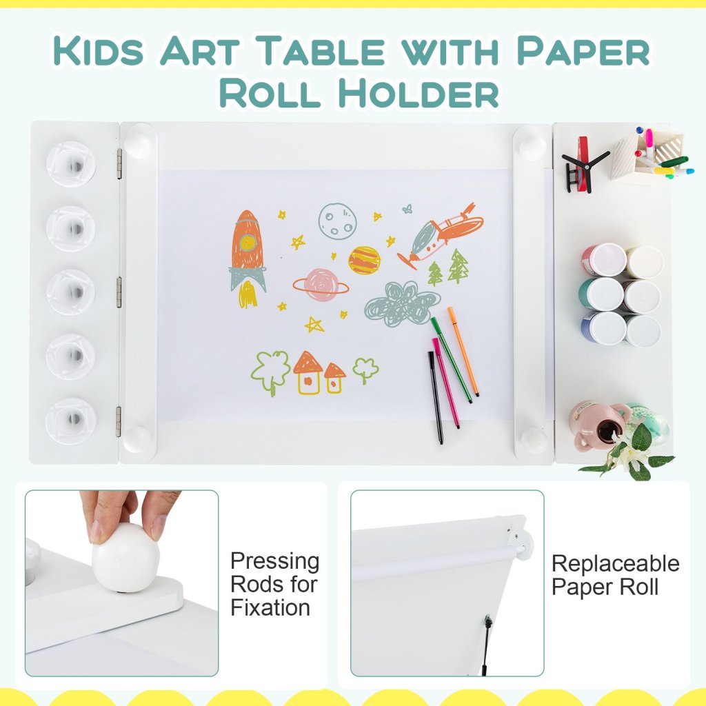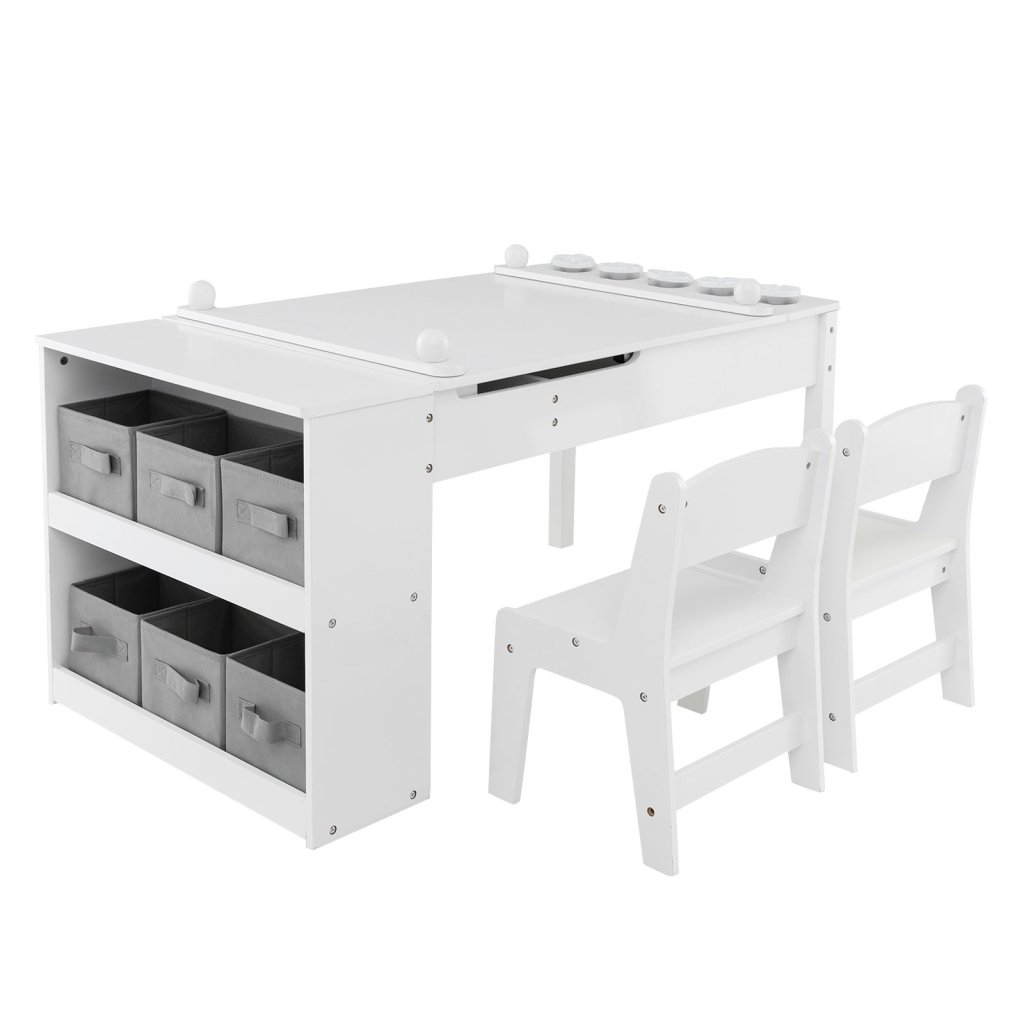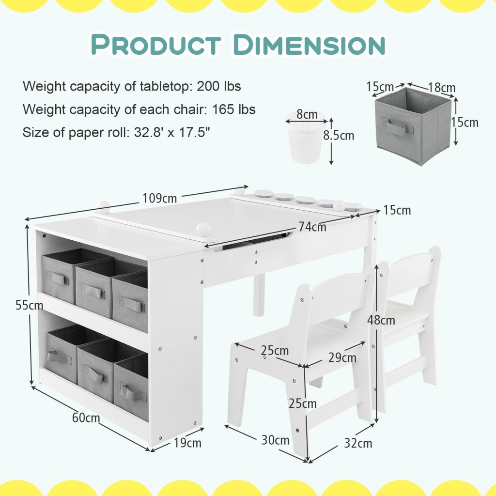 Tento moderný detský Montessori stôl 2v1 je ideálnou voľbou pre každého malého umelca, staviteľa alebo objaviteľa. Multifunkčný dizajn v sebe spája pracovný stôl, kresliacu tabuľu, úložný priestor a učebnú zónu – všetko v krásnom bielom prevedení, ktoré ladí s každým interiérom. Montessori princíp: Podporuje samostatnosť, kreativitu a schopnosť organizácie. Deti majú všetko na dosah a učia sa zodpovednosti za svoje veci. Úložné boxy: 6 priestranných textilných košov poskytuje dostatok miesta pre pastelky, hračky, stavebnice aj ďalšie pomôcky. Bezpečné prevedenie: Zaoblené hrany a stabilná konštrukcia z kvalitného dreva zaisťujú bezpečnosť pri každodennom používaní. Elegantný vzhľad: Jednoduchý biely dizajn zapadne do každej detskej izby, herne alebo škôlky. Parametre: Farba: biela Materiál: MDF Rozmery stola: 109 cm x 60 cm x 55 cm (D x Š x V) Rozmery stoličky: 32 cm x 29 cm x 48 cm (D x Š x V) Výška sedadla: 25 cm Rozmery úložnej krabice: 18 cm x 15 cm x 15 cm (D x Š x V) Rozmery rolky papiera: 10 m x 44 cm (D x Š) Rozmery kalíška na farbu: 8 cm x 8,5 cm (priemer x V) Nosnosť dosky stola: 91 kg Nosnosť každej stoličky: 50 kg Vhodný vek: 3+ rokov Čistá hmotnosť: 23,5 kg Obsah balenia: 1 x detský umelecký stôl 2 x stolička 1 x rolka papiera 5 x tégliky na farbu 6 x úložné boxy 1 x návod na použitieDodatočné parametre