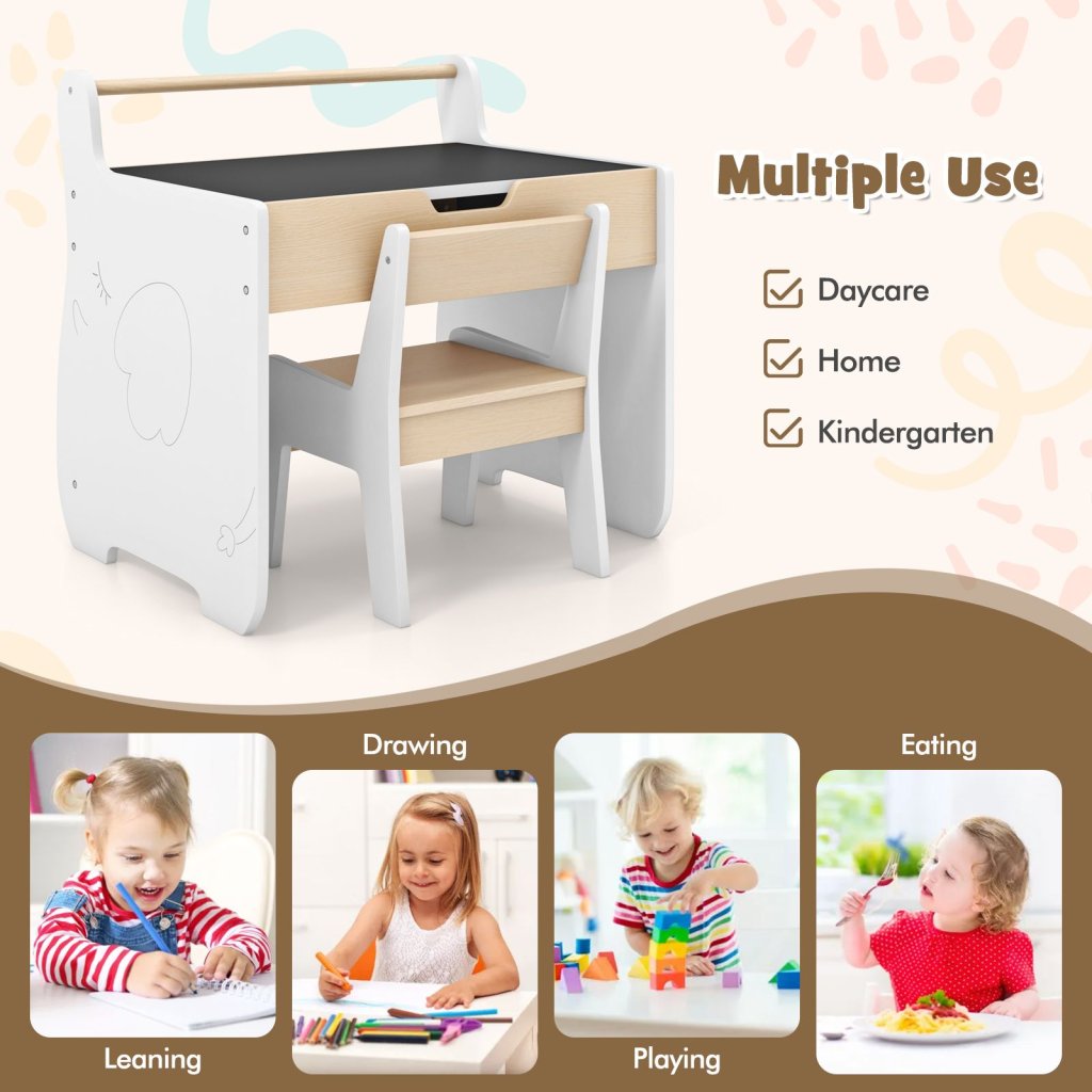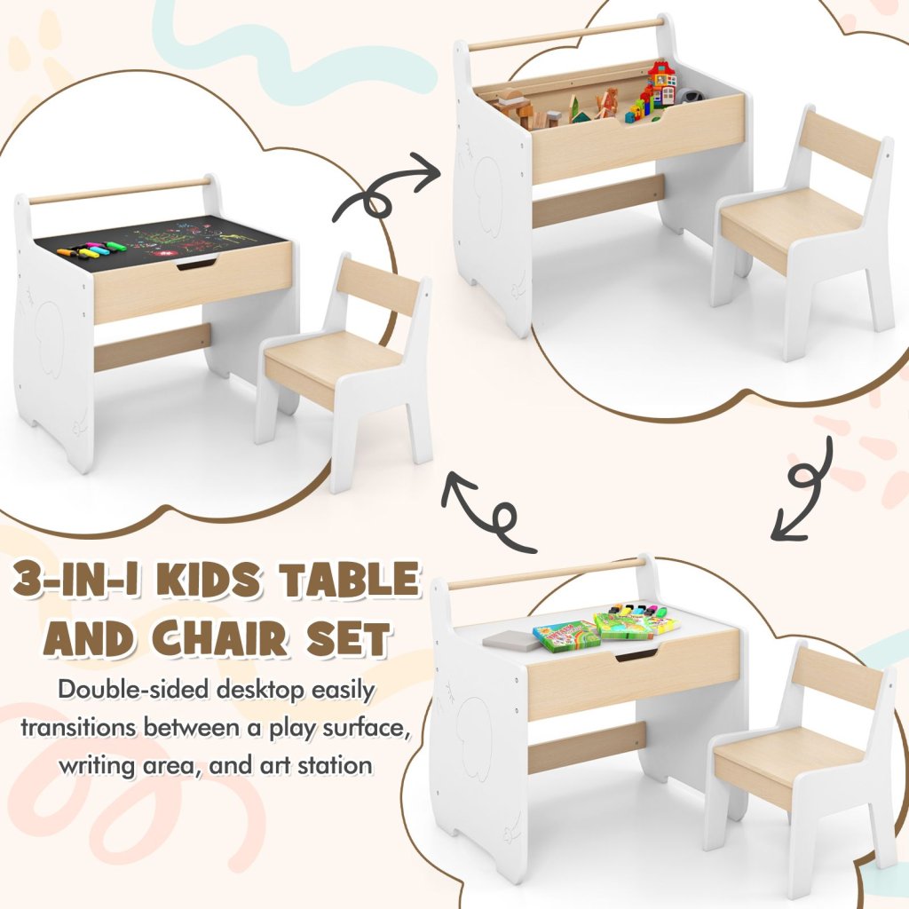 Detský multifunkčný písací stôl 3v1 so stoličkou - natural