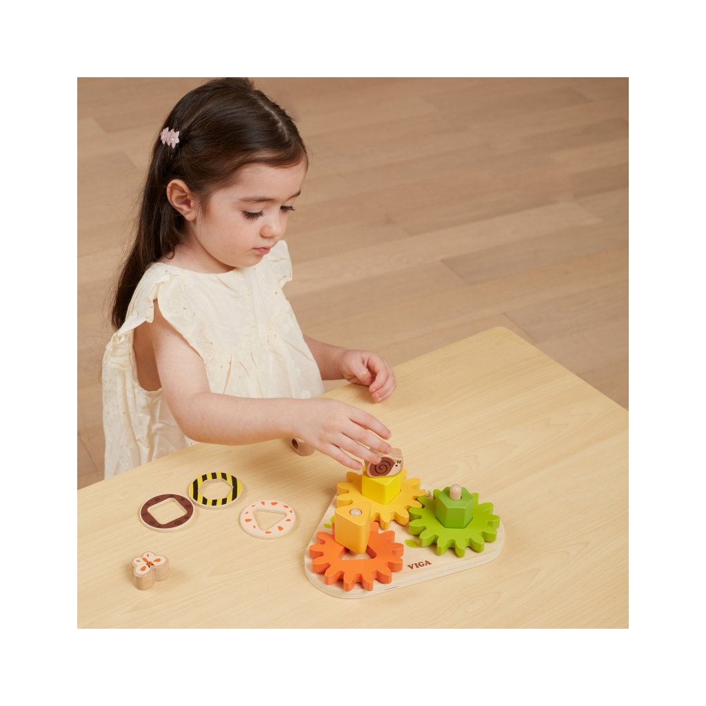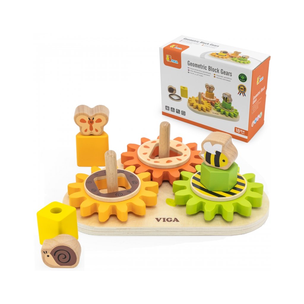 Drevená montessori doska – tvary, ozubené kolesá a mechanizmy je múdra drevená edukatívna doska, ktorá spája triedenie tvarov s objavovaním jednoduchých mechanických princípov. Deti vkladajú farebné geometrické dieliky do správnych otvorov (trojuholník, štvorec, kruh a pod.), čím precvičujú rozpoznávanie tvarov a farieb, logické myslenie a presnú koordináciu ruka-oko. Súčasťou sú aj ozubené kolesá, ktoré sa po otočení jedného dávajú do pohybu všetkých — dieťa tak „na vlastnej koži“ spozná, ako funguje prevod a vzájomné prepojenie mechanizmu. Hra rozvíja jemnú motoriku, trpezlivosť, pozornosť aj priestorové vnímanie a zároveň podporuje logiku a prvé mechanické pochopenie. Vďaka drevenému prevedeniu s hladkými hranami a netoxickým farebným náterom je hračka bezpečná aj pre malé deti. Parametre: Rozmery: 22 x 17 x 86 cm Materiál: drevo Vhodný pre deti od 18 mesiacovDodatočné parametre