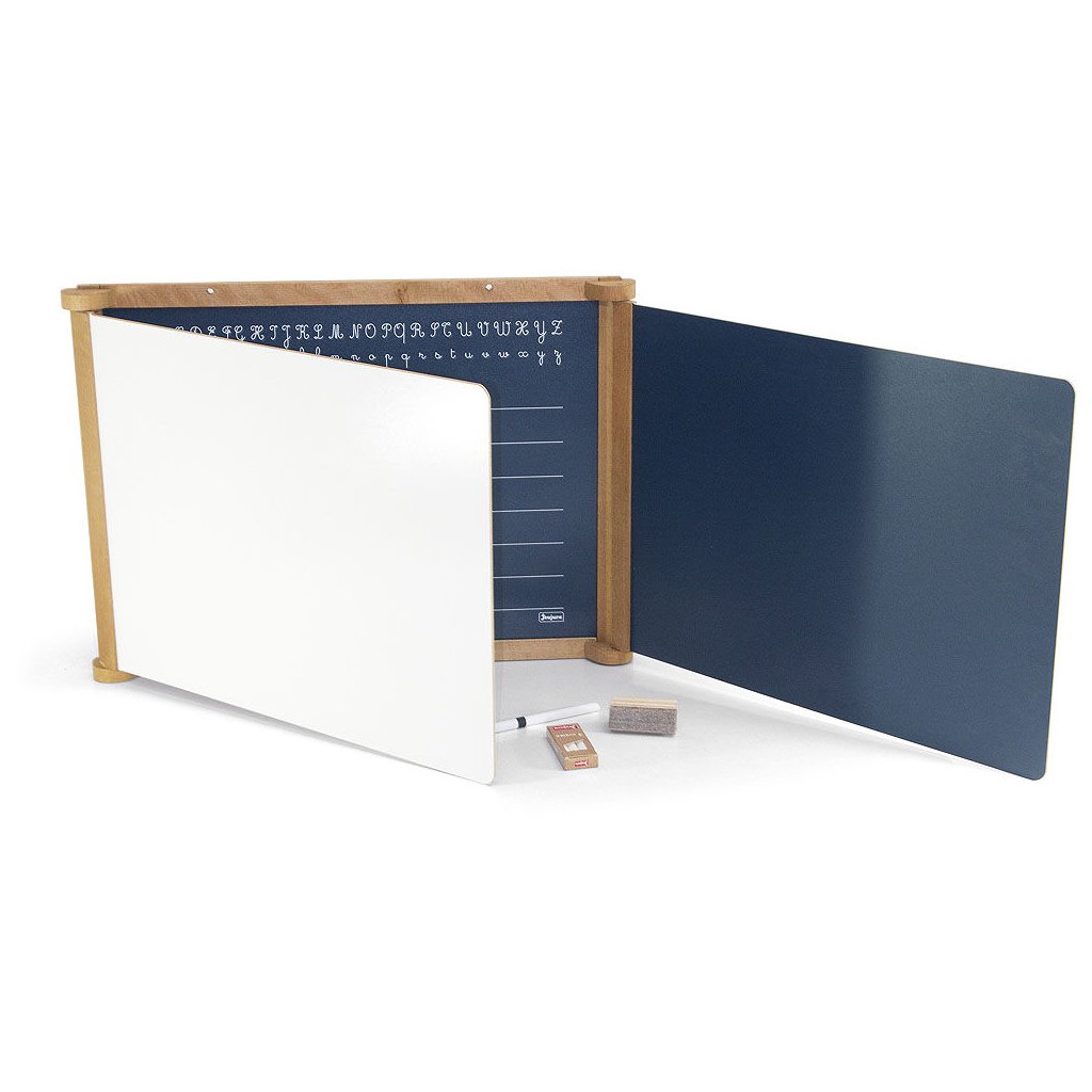 Táto veľká trojkrídlová tabuľa ponúka praktické a tvorivé riešenie pre deti, ktoré rady kreslia, učia sa alebo pripravujú projekty. Rozmery 156 × 43 cm poskytujú dostatočne veľký priestor na písanie, maľovanie kriedou i fixkou, náčrty aj písanie domácich úloh. Trojkrídlový dizajn umožňuje jednoducho ukryť alebo sklopiť bočné panely, čo pomáha pri úspore miesta a zároveň chráni prácu dieťaťa pred zakrytím či poškodením. Tabuľa je vybavená praktickými doplnkami, ktoré umožňujú okamžité použitie – držiakom na kriedy alebo fixky, možno tiež hubkou alebo iným príslušenstvom, podľa konkrétnej výbavy. Rám a konštrukcia sú drevené, čo zaisťuje stabilitu a estetický vzhľad vhodný do detskej izby aj do vzdelávacích zariadení. Povrch tabule je hygienický a ľahko sa udržuje, stačí utrieť vlhkou handričkou či hubkou. Táto multifunkčná tabuľa je vhodná pre deti, ktoré už ovládajú držanie písacích pomôcok alebo sa usilujú rozvíjať svoje kreatívne schopnosti a písanie. Skvele sa hodí pre rodičov aj pedagógov, ktorí chcú podporiť samostatné učenie, kreatívne vyjadrovanie, plánovanie a organizáciu. Dizajn tabule zapadne do moderného aj klasického interiéru; kombinácia užitočnosti, kvality a nadčasového materiálu z nej robí hodnotný doplnok detského priestoru. Rozmer: 156 x 43 cm Materiál: drevo, plast, iný materiálDodatočné parametre