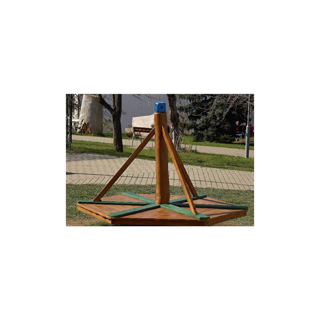 Kolotoč Káča z akátového dřeva je masivní a kvalitně zpracovaný. Vhodně doplní dětská hřiště z akátového dřeva a také všude tam, kde je třeba volit přírodní materiály a nebyl by vhodný kovový kolotoč s plastovými doplňky. Kolotoč Káča z akátu je vhodný pro dětská hřiště a zahrady mateřských škol, bude svou kvalitou a odolností dlouhá léta sloužit dětem. Masivní konstrukce a akátové (dubové) dřevo zaručují dlouhou životnost tohoto herního prvku. Dřevo je ošetřené slabovrstvou lazurou. Otáčení kolotoče je zajištěno pomocí kvalitních a odolných ložisek. Kotva k zabetonování do terénu je masivní kovová. Kovové díly kolotoče jsou ošetřené žárovým zinkem. Výška pádu kolotoče Káča z akátového dřeva je 1 m, proto není nutné zřizovat dopadový tlumící povrch, stačí udržovaný trávník. Pokud není na pozemku kvalitní trávník nebo dochází k jeho vyšlapávání doporučujeme zde položit pryžové zatravňovací desky Grass nebo Saf z naší nabídky, viz. související zboží. Herní prvek je určený dětem od 3 do 15 let, nad dětmi od 3 do 6 let je nutný dozor dospělé osoby. Kolotoč z akátu Káča je certifikovaný dle EN 1176 pro veřejná dětská hřiště.Dodatočné parametre