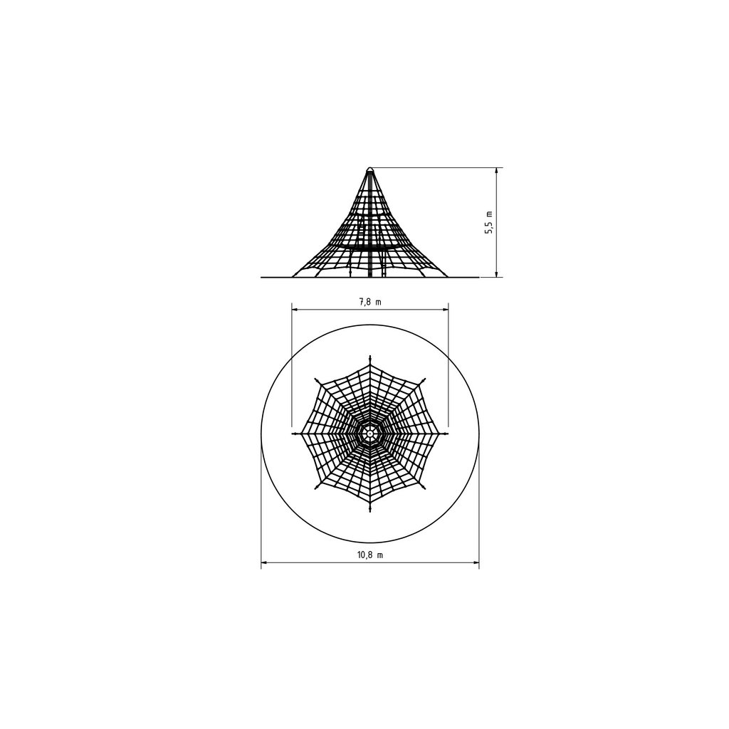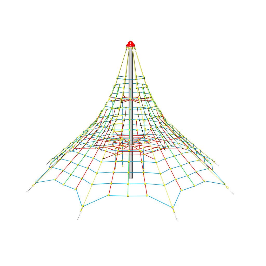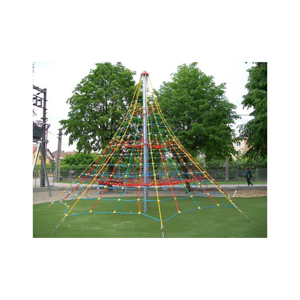 Lanová šplhací věž 5,5 m - umožní dětem šplhání po lanech a hru na veřejných dětských hřištích. Lanová šplhací věž 5,5 m (v.p. 1,5 m) má ocelový sloup o průměru 159 mm, šplhací síť je vyrobena z lan Herkules (16 mm lana z polypropylenu s vnitřním ocelovým jádrem), k síti je připevněno 2 x vnitřní lanové patro, spodní se šplhacím žebříkem a lanem s plastovými úchyty, zde mohou děti i odpočívat a nebo si hrát. Napínací zámky (pomocí kterých se síť na pyramidě vypíná) jsou nerezové. Šplhací herní sestava Lanová věž 5,5 m (v.p. 1,5 m) je opravdu velká a dobře navržená šplhací pyramida, dětem nabídne mnoho příležitostí ke šplhání, lezení a bude vhodně rozvíjet jejich motorické schopnosti. Sestava je díky své výšce vhodná pro děti od 3 do 15 let, které rádi lezou a posilují. Tuto herní sestavu doporučujeme na dětská hřiště, do zahrad mateřských škol, ale i k restauracím, hotelům, dětským centrům, a pod. Konstrukce herního prvku je vyrobena z odolné oceli, která je ošetřena zinkováním proti korozi. Všechny sítě používané na tyto herní sestavy jsou vyrobené z lan s ocelovou výztuží (typu Herkules). Tato lana jsou velmi odolná vandalům a mají také dlouhou životnost. Tato herní sestava velmi dobře odolává zátěži při hře většího počtu dětí a také vandalům. Lanová šplhací věž 5,5 m se skládá z: 1× ocelový sloup síťová plocha z lan Herkules 2 x vnitřní lanové patro 1 x lanový žebřík 1 x šplhací lano s plastovými úchyty spojovací materiál Lanová šplhací věž 5,5 m má pádovou výšku 1,5 m. Proto je nezbytně nutné vytvořit v dopadové oblasti lanové věže tlumící povrch pro případ pádu (např. 30cm silná vrstva písku, kačírku nebo drcené kůry). Náš tip - nejvýhodnější materiál pro vytvoření dopadové plochy tlumící pád z výšky až 3 m jsou pryžové zatravňovací desky Grass a Saf. Jejich instalace je jednoduchá pokládka na terén bez nutnosti zemních prací. Najdete je v souvisejícím zboží. Výhody – nevýhody jednotlivých podkladů: Dopadové pryžové dlaždice •+zcela bezpečný, rovný , ohraničený povrch •+plní tlumící funkci při dopadu •+estetický vzhled •+nenáročné na údržbu • - nutnost větší stavební přípravy (ideálně podkladový beton) Kačírek ( doporučujeme frakci 4/8) •+plní drenážní funkci •+plní tlumící funkci při dopadu dětí •-děti roznáší kamínky do okolního trávníku Písek •-Zadržuje vodu •-Roznáší se po zahradě •-Dochází k mechanické odírání částí herní sestavy •-Láká domácí zvířata ( především kočičky) Mulčovací kůra •-Zadržuje vodu •-Vytváří vlhkost u země a tvoří se plísně •-Sesychá – nutnost doplňovat. Lanová šplhací věž 5,5 (v.p.1,5 m) je určena pro děti od 3 do 15 let, na děti od 3 do 6 let je nutný dohled dospělé osoby. Lanová šplhací věž 5,5 m (v.p. 1,5 m) je certifikovaná dle EN 1176 pro veřejná dětská hřiště.Dodatočné parametre
