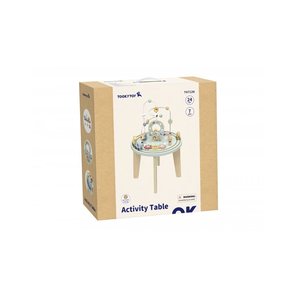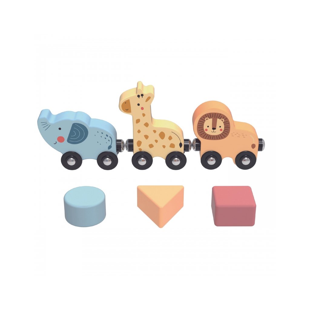 Interaktívny drevený stolík aktivít je navrhnutý tak, aby bavil deti a súčasne rozvíjal ich motoriku, koordináciu a logické myslenie. Stolík obsahuje päť rôznych herných prvkov - dvojitú motorickú slučku, vkladací tvarový sorter, ozubené kolieska a drevenú vláčkovú dráhu s malými zvieratkami ako vagónik. Vďaka tomu sa dieťa môže hrať rôznymi spôsobmi a skúmať farby, tvary aj pohyb. Zábavná a pestrá farebnosť priťahuje pozornosť, pričom samotné komponenty sú vyrobené z bezpečného dreva s netoxickým lakom. Hračka je určená pre deti od dvoch rokov a podporuje samostatnú hru v stoji, čo pomáha budovať stabilitu a rovnováhu. Parametre: Rozmery: 40 x 40 x 56,6 cm Materiál: drevo Vhodné pre deti: od 2 rokovDodatočné parametre