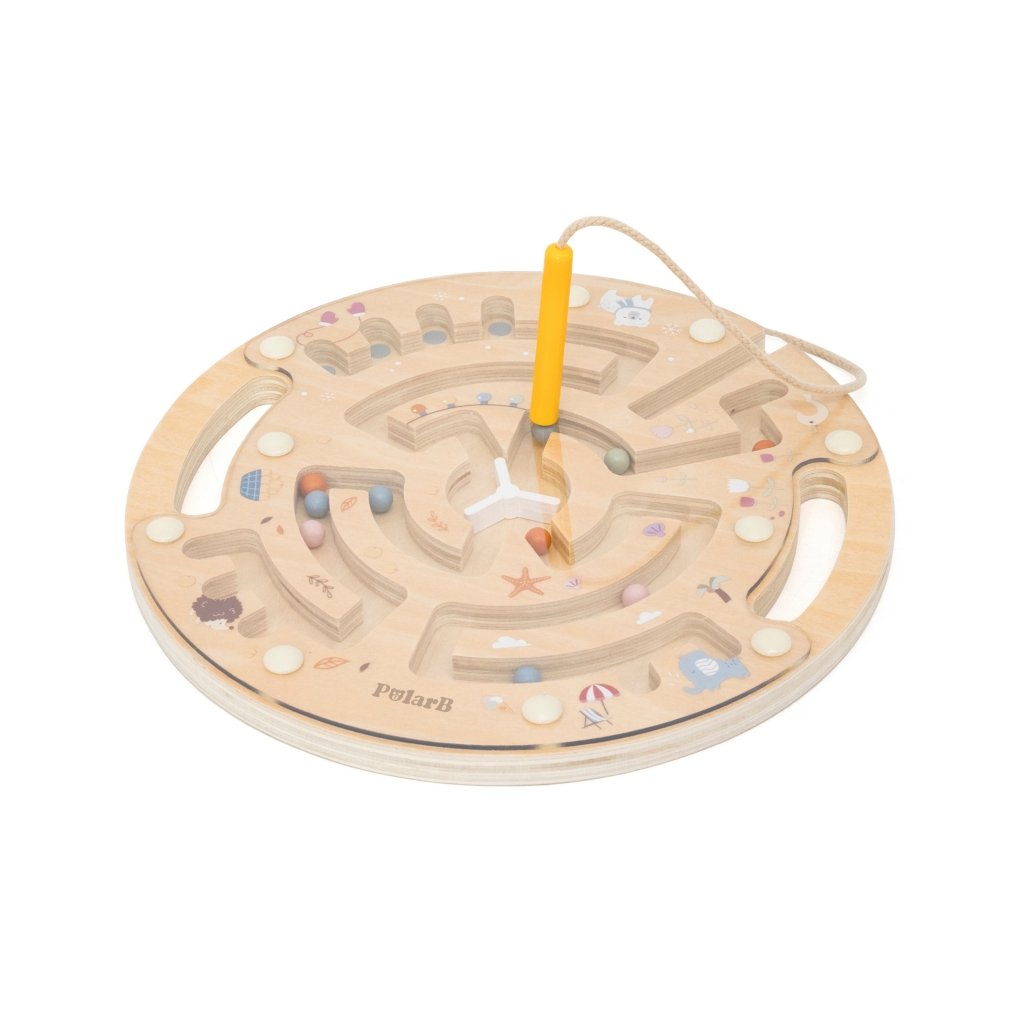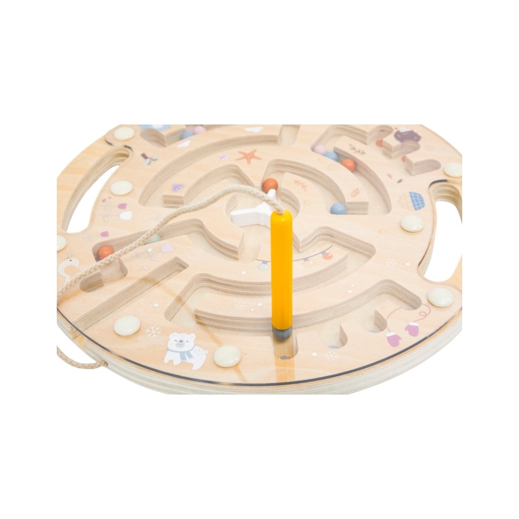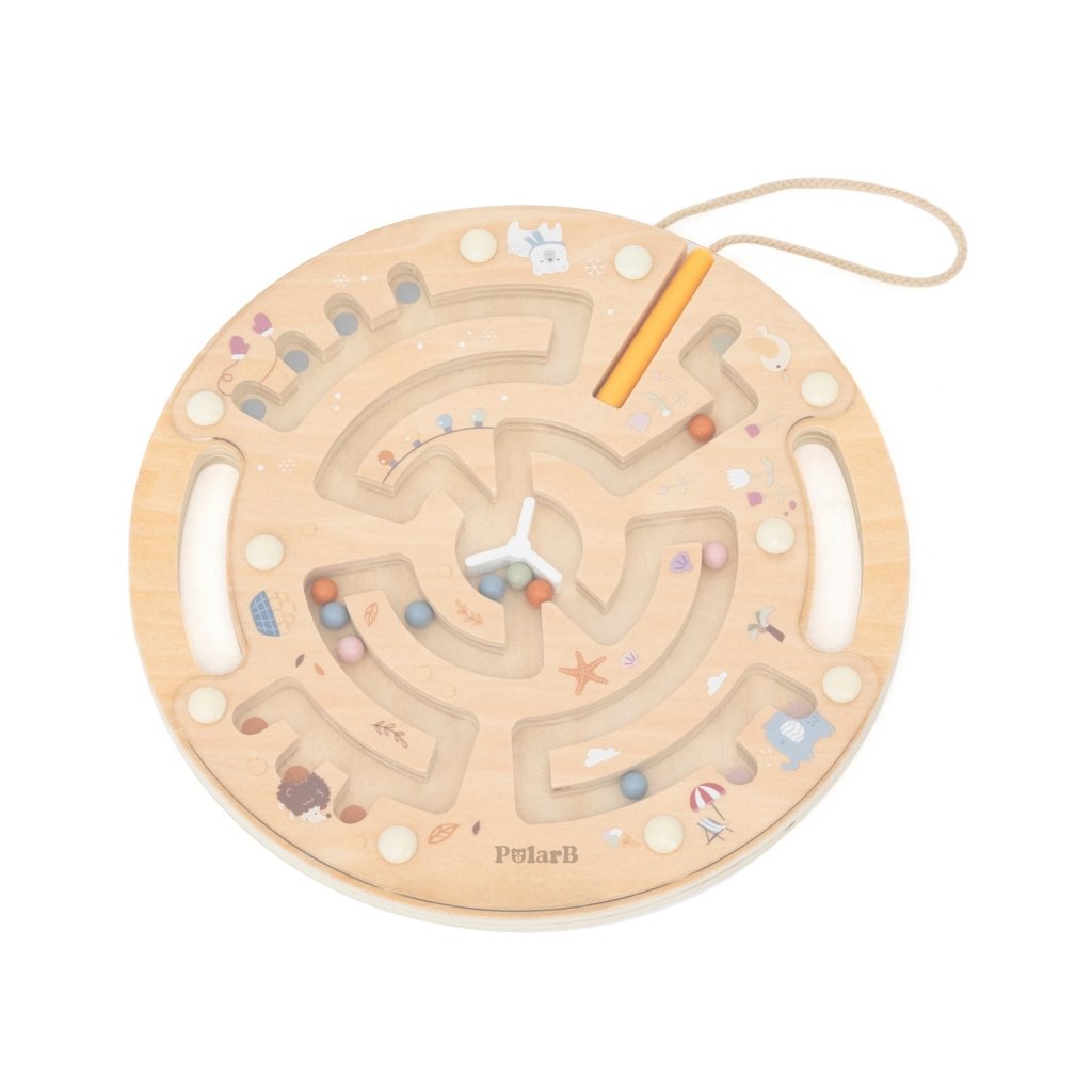 Magnetický labyrint premení učenie na dobrodružstvo plné farieb a pohybu. Pomocou magnetického pera deti posúvajú farebné guličky labyrintom tak, aby ich správne priradili ku každému ročnému obdobiu – jar, leto, jeseň aj zima sa tak stanú ihriskom pre tréning logiky, sústredenia a jemnej motoriky. Vďaka roztomilým ilustráciám, pevnému drevenému prevedeniu a bezpečnému dizajnu je hračka ideálna už pre deti od 18 mesiacov. Parametre: Rozmery: 22.5 x 22.5 x 0.17 cm Materiál: drevoDodatočné parametre