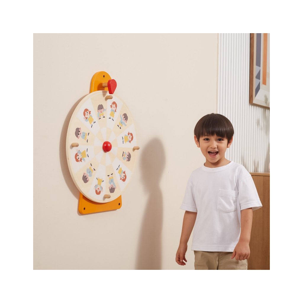 Drevená nástenné „Kolo emócií“ je ideálnou pomôckou pre rozvoj emočnej inteligencie u detí. Stačí otočiť kolieskom a šípka ukáže jeden z dvanástich výrazov tváre – dieťa môže danú emóciu napodobniť, pomenovať alebo popísať, čo ju spôsobuje. Hravým spôsobom sa tak učia chápať svoje vlastné pocity aj pocity ostatných. Tabuľa je inšpirovaná Montessori princípmi, podporuje komunikáciu, empatiu i sociálne vnímanie a hodí sa ako do škôlok a herničiek, tak aj do domáceho prostredia. Vyrobená je z kvalitného dreva s FSC certifikáciou a natretá netoxickými farbami, takže je nielen odolná a bezpečná, ale aj šetrná k prírode. Vďaka výraznej grafike a veľkému formátu zaujme deti na prvý pohľad a stane sa obľúbenou súčasťou každodenného hrania aj učenia. Parametre: Rozmery: 56.5 x 45 x 6.5 cm Materiál: drevoDodatočné parametre