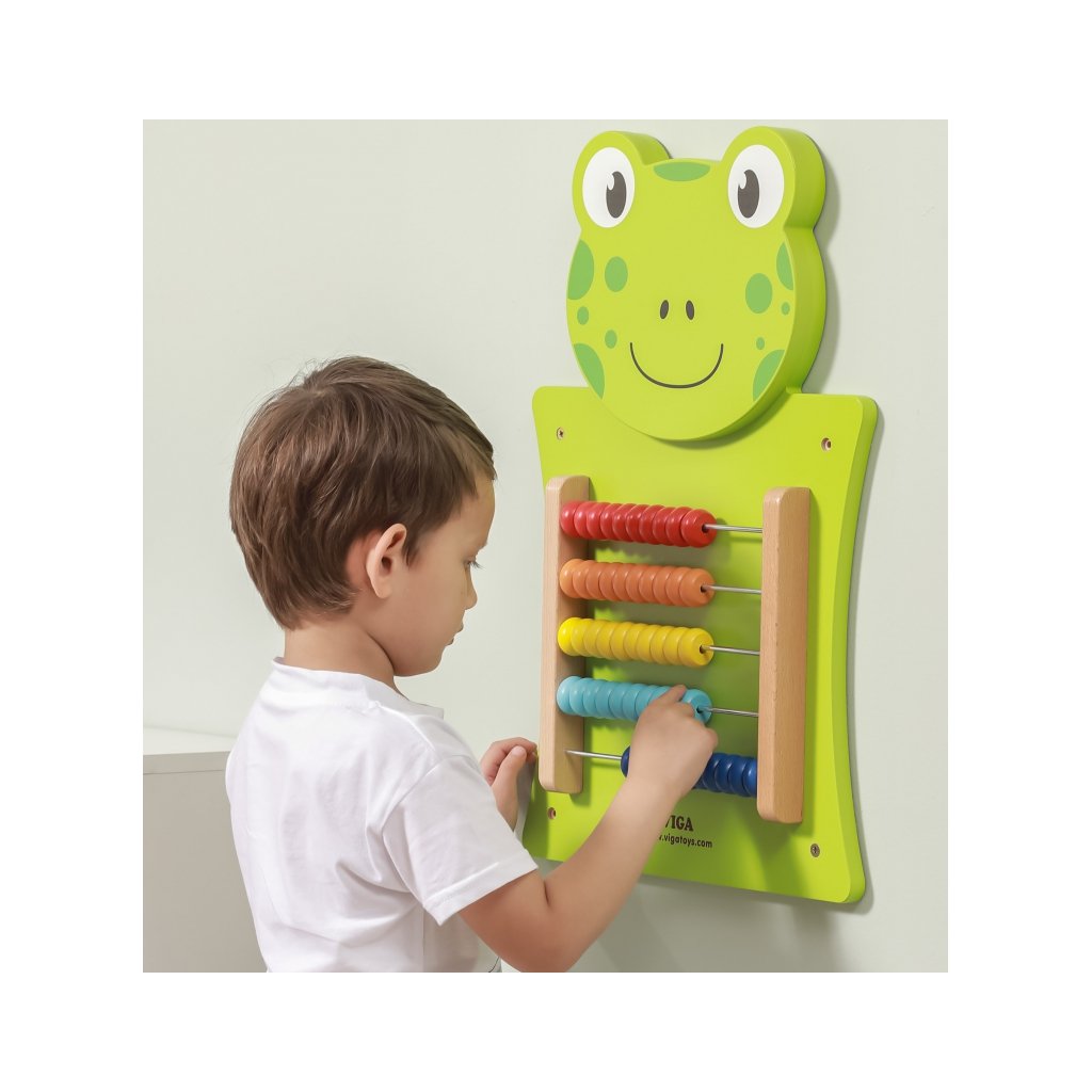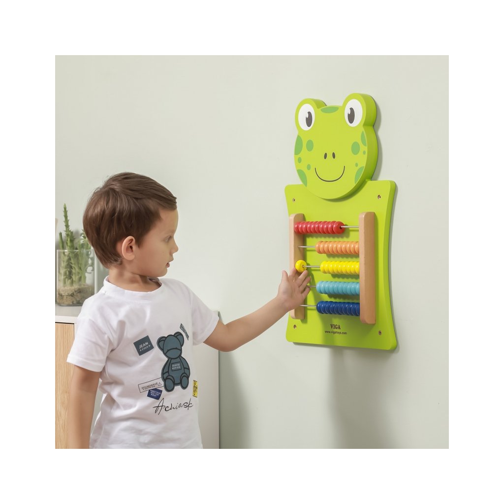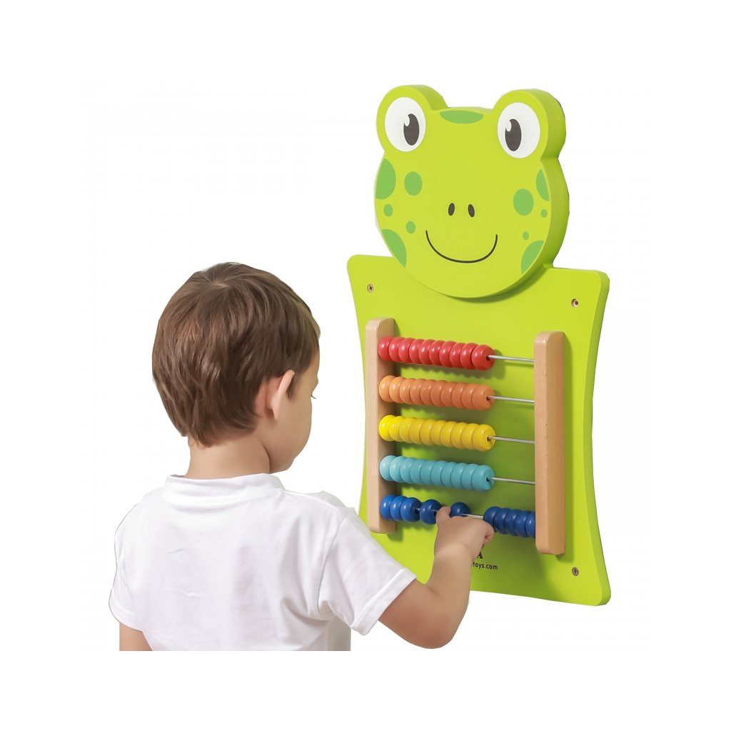 Ponorte sa do sveta počítania s veselou žabkou! Táto drevená manipulačná tabuľa s motívom žabky kombinuje roztomilý dizajn s praktickou výučbou - deti od 18 mesiacov môžu prehadzovať farebné korálky po drôtikoch ako jednoduché abakusové počítadlo. Každý pohyb podporuje jemnú motoriku, vizuálne vnímanie a základné matematické schopnosti. Tabuľa je vyrobená z pevného dreva, opatrená netoxickými farbami a nesie certifikáciu FSC, čo zaručuje šetrnosť k prírode. Parametre: Rozmer: 36 x 55 x 4.5 cm Materiál: drevoDodatočné parametre