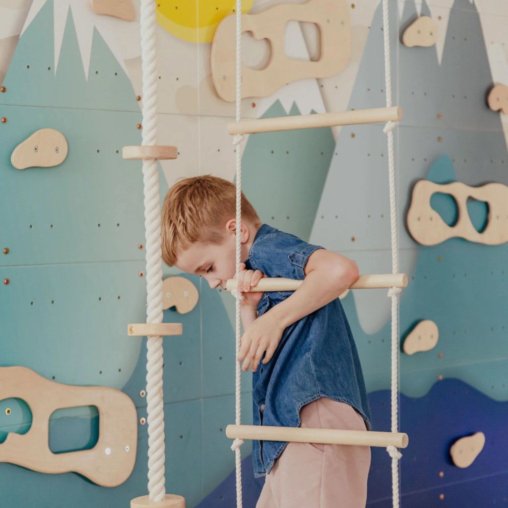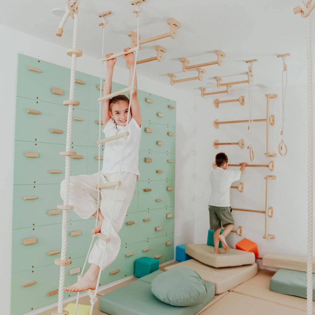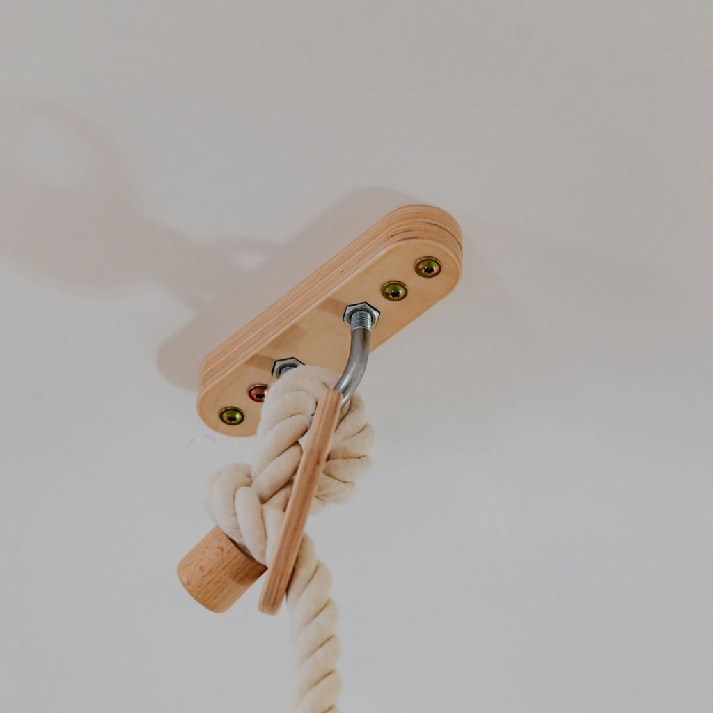 Závesné interiérové ??prvky, ktoré ponúkajú inšpiratívny spôsob, ako premeniť detskú izbu či herňu na aktívny a kreatívny priestor pre pohyb a objavovanie. Vytvorte deťom ich vlastný hrací priestor, kde budú radi tráviť čas a hlavne zdokonaľovať svoju fyzickú zdatnosť, flexibilitu, silu a môžu sa zlepšovať, kedykoľvek budú chcieť, pretože herné prvky majú doma a kedykoľvek v dosahu, kedy budú chcieť aktívnu zábavu. Závesné prvky sú z prírodného lana a sú vyrobené z bukového dreva, čo zaručuje konštrukčnú pevnosť aj esteticky prírodný vzhľad. Prirodzená farba dreva nezaťažuje dizajn interiéru a dobre ladí s modernými aj pokojnejšími priestormi. Montáž je jednoduchá a flexibilná - vďaka možnosti kombinovať niekoľko sád je možné vytvoriť väčšiu plochu či systém pre viac detí či variabilné hranie. Odporúčaný limit pre bežné použitie je 60 kg. Tým je zaistená bezpečnosť a dlhodobá spoľahlivosť pri každodennom hraní. So závesnými prvkami získavate vybavenie, ktoré podporuje rozvoj telesnej sily, koordinácie, rovnováhy i motorických zručností detí a zároveň sa stáva štýlovým prvkom každého priestoru. Podľa potrieb vašich detí môžete herný priestor rozšíriť podľa vašich možností a preferencií Vašich detí, všetky aktívne doplnky na vytvorenie herničky môžete vyberať v sekcii súvisiaci tovar. Sada obsahuje: 1x hojdací disk, 1x gymnastické kruhy, 1x 8 stupňový povrazový rebrík, 1x šplhacie lano s 8 šplhacími bodmi, 1x montážne sety na upevnenie do stropu súčasťou baleniaDodatočné parametre