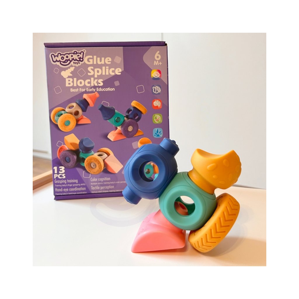 Senzomotorické konštrukčné kocky - 13dielna sada pre najmenšie deti od 6 mesiacov veku je skvelou hračkou, ktorá podporuje prirodzený rozvoj zmyslov, jemnej motoriky a tvorivosti. Mäkké farebné kocky sú vyrobené z kvalitného, ??bezpečného plastu príjemného na dotyk a ideálne sa hodia do malých detských ručičiek. Každá kocka má inú textúru, reliéfny vzor alebo motív zvieratka či geometrického tvaru, čo stimuluje hmat, zrak aj zvedavosť dieťaťa. Vďaka rôznym tvarom a spojovacím prvkom je možné kocky skladať na seba, spájať a vytvárať jednoduché konštrukcie alebo postavičky. Deti si tak precvičujú koordináciu oko-ruka, logické myslenie a kreativitu. Zaujímavým prvkom je aj možnosť kocky stláčať – pri stlačení vydávajú jemný pískavý zvuk, ktorý upúta pozornosť a podporuje sluchové vnímanie. Vďaka mäkkému materiálu sú úplne bezpečné, neobsahujú ostré hrany ani malé časti. Hračka pomáha rozvíjať jemnú motoriku, zmyslové vnímanie, rozpoznávanie tvarov a farieb aj schopnosť manipulácie s predmetmi. Je vhodná ako pre chlapcov, tak pre dievčatá a vďaka atraktívnemu baleniu je ideálnym darčekom pre malé deti. Rozmery jednej kocky sú približne 6 × 6 × 2 cm, celé balenie má rozmer asi 22,5 × 17,5 × 5,5 cm. Súprava obsahuje celkom 13 kociek. Parametre: Kocky - 6 × 6 × 2 cm Balenie: 22,5 × 17,5 × 5,5 cm Sada obsahuje: 13 kociek Materiál: mäkká gumaDodatočné parametre
