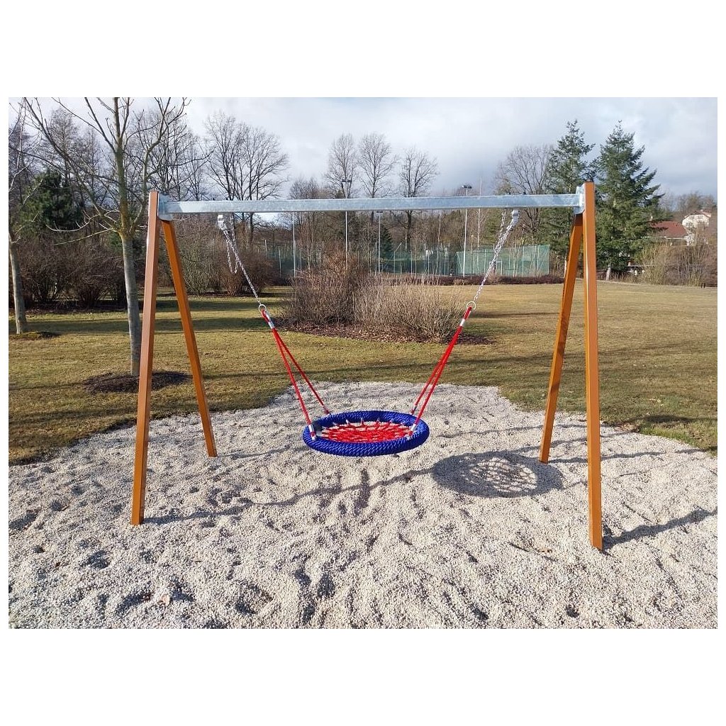 Reťazová hojdačka hniezdo celokovová má priemer hniezda 1 m, výška pádu 1,5 m je nutné vytvoriť dopadové plochy tlmiace pád. Táto hojdačka je vhodná pre deti od 3 do 14 rokov a preto ju odporúčame na verejné detské ihriská do obcí a miest a taktiež do záhrad materských a základných škôl. Samozrejme taktiež ku komerčným objektom, napríklad k hotelom, reštauráciám a pod. Hojdačka Hniezdo celokovová je veľmi odolná a masívna hojdačka s hniezdom, ktoré je tak isto ako konštrukcia certifikované podľa EN 1176.