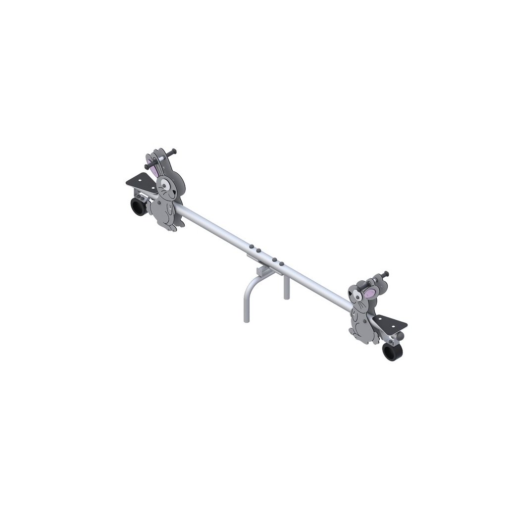 Vahadlová houpačka Králíčci je pevná houpačka umožňující houpání dvou dětí ve věku od 3 do 14 let. Uplatnění tato houpačka najde na dětských hřištích v obcích a městech, ale vhodně doplní i zahrady mateřských a základních škol. Kvalitní houpačka najde své uplatnění i u komerčních objektů - restaurací, hotelů, penzionů... Nosná konstrukce vahadlové hooupačky Králíčci je vyrobena z konstrukční oceli (kovový profil průměr 76 mm), která je proti korozi chráněna povrchovou úpravou zinkováním, čímž se docílí velmi výrazného prodloužení životnosti herního prvku a polyesterovým lakem. Tyto konstrukce jsou zabetonovány přímo do terénu. Houpačka má pohodlné plastové sedáky a kvalitní odolné pryžové dorazy, které tlumí nárazy při houpání. Výška pádu vahadlové houpačky Králíčci je do 1 m, jako dopadové plochy dostačuje udržovaný trávník. Pokud na pozemku, kde chcete domek umístit není tráník doporučujeme zde položit pryžové desky, nebo 30 cm vrstvu kačírku, písku nebo drcené kůry. Houpačka je určená pro děti od 3 do 14 let, nad dětmi od 3 do 6 let je nutný dohled dospělé osoby. Vahadlová houpačka králíčci je certifikovaná dle EN 1176 pro veřejná dětská hřiště.Dodatočné parametre